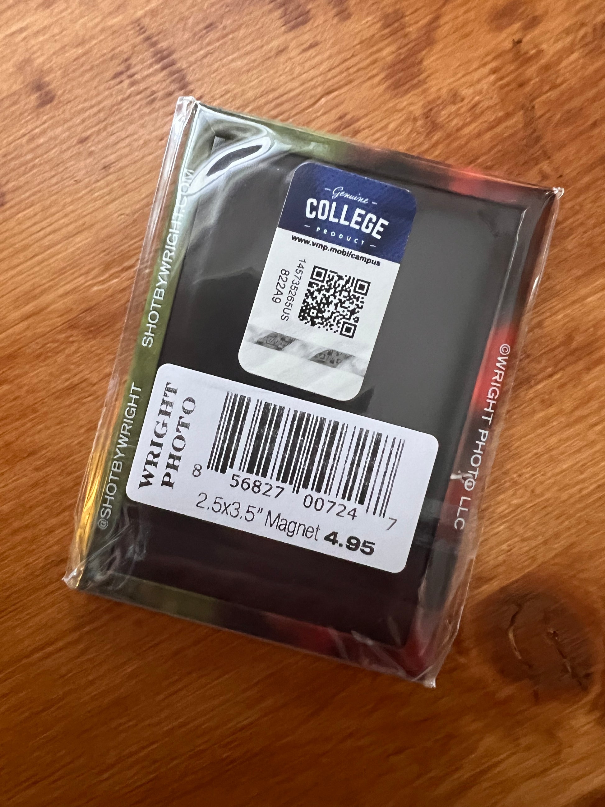 Packaging: Magnets come in Poly Bags with Genuine Collegiate Product and MSRP labels Attached.